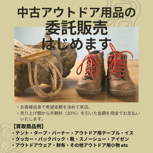 【中古アウトドア用品の委託販売を始めます】
