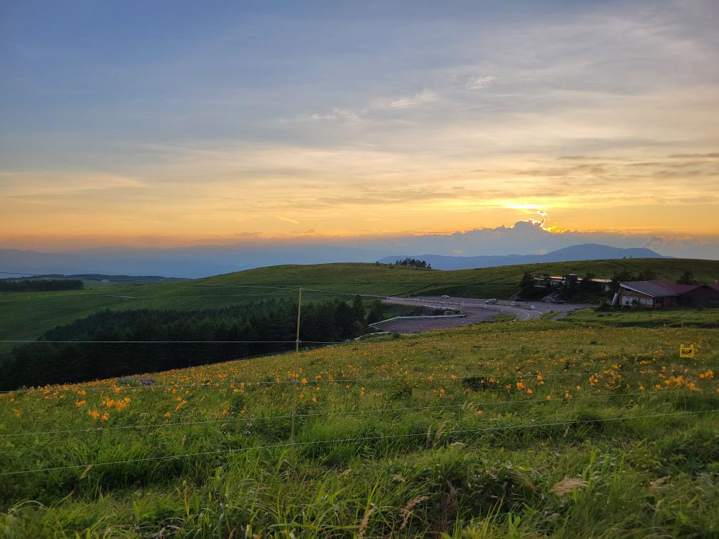車山湿原や高原の夕景を見ながら