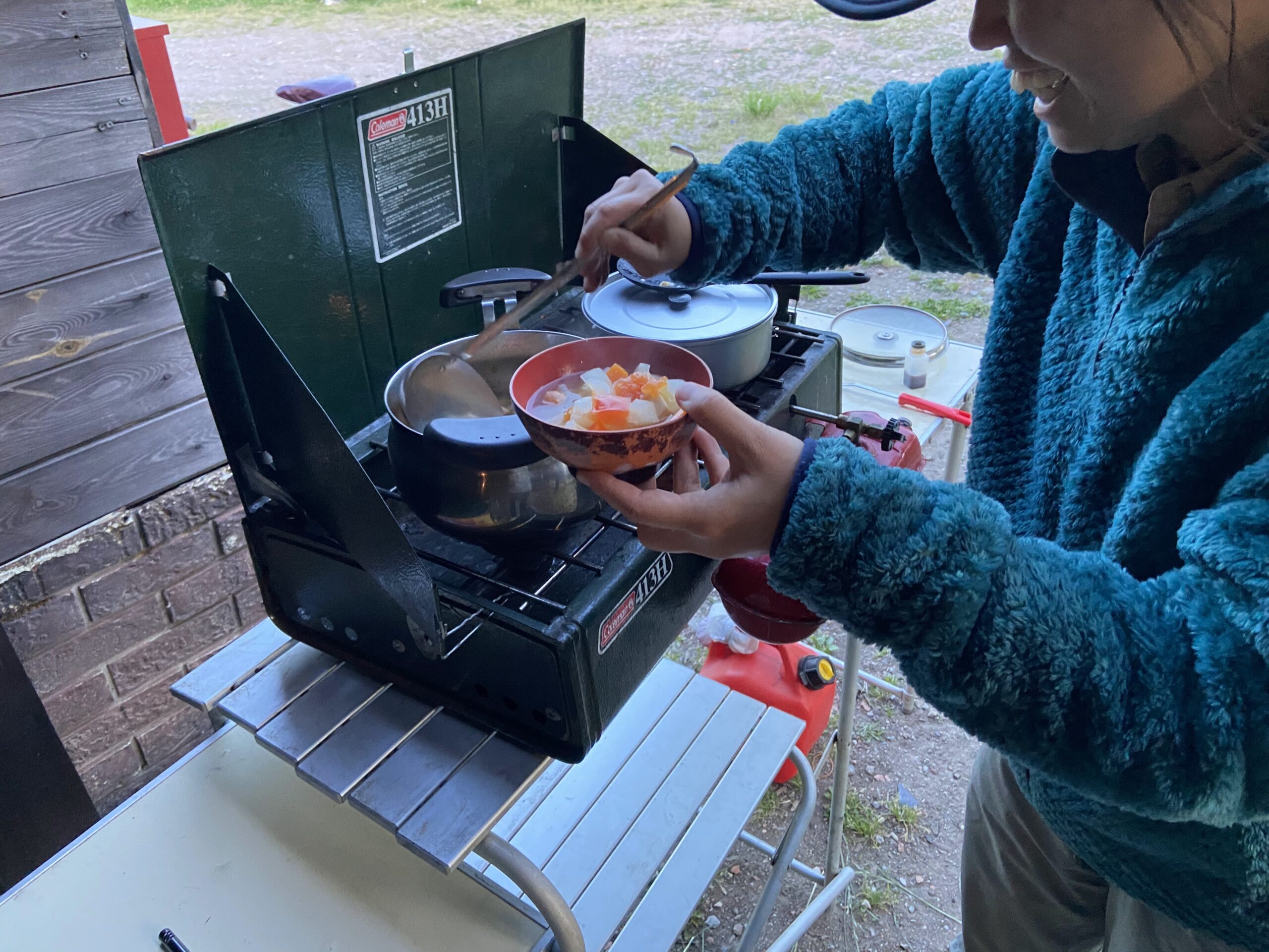 各々で料理を作り、まったり焚き火🔥