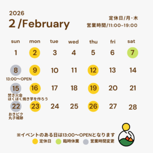 【2月の営業日のお知らせ】