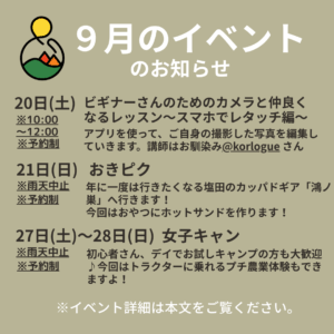 【9月のイベントのお知らせ】