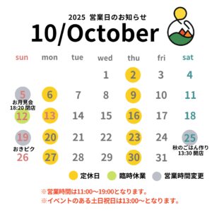 10月の営業日のお知らせ
